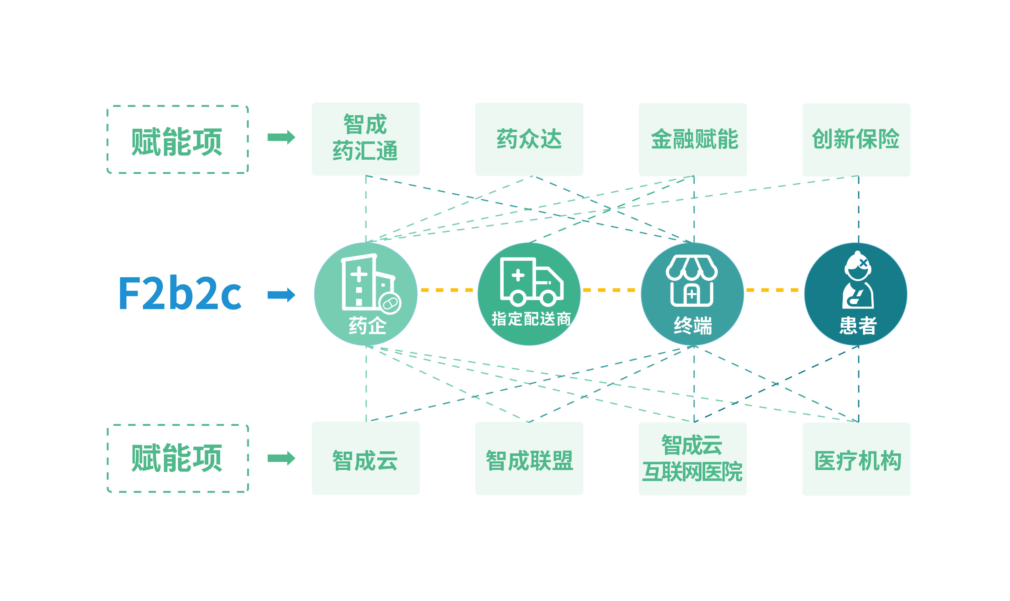 提供F2b2c医药全流通解决方案,在药品与患者之间,架起重要的连通、推广及用户教育的作用。同时,线上效率提升、流程透明的特点利于各环节的优化主要项目包括智成药汇通,智成云,药众达以及智成联盟。智成药汇通提供F2b2c医药供应链第三方交易平台,智成云医药“新零售”全产业链生态系统,药众达人员管理及整合医药人推广业务的裂变平台,智成联盟用大数据集合单体药店优化整体供应链交易。
